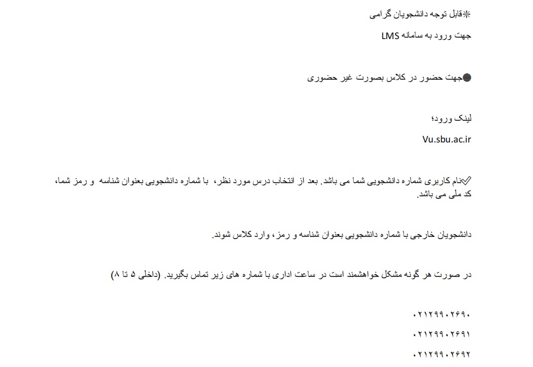 به اطلاع دانشجویان گرامی در تمامی مقاطع تحصیلی میرساند: