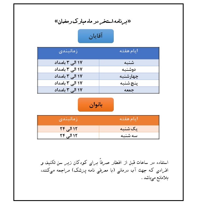 زمانبندی استخر فجر دانشگاه تابستان 98